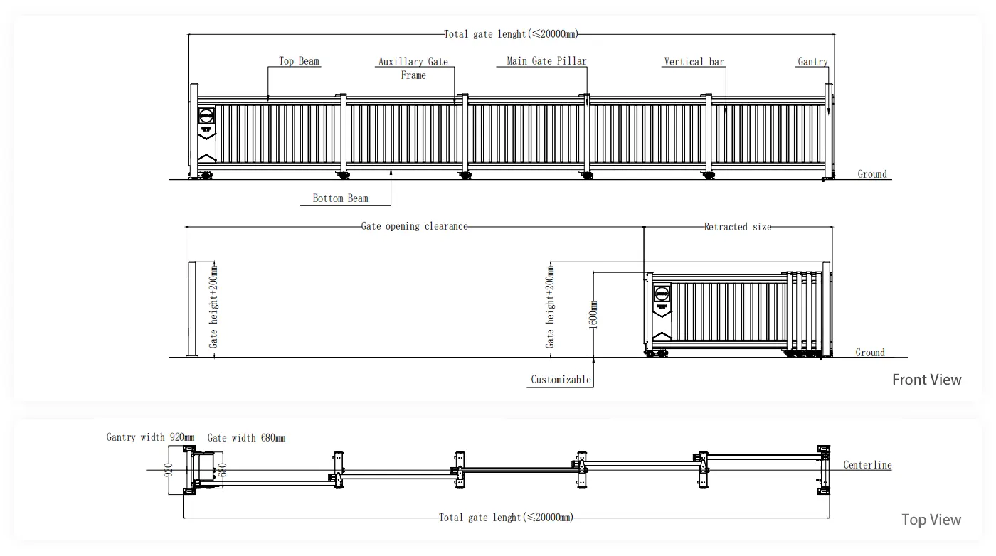The gate chassis is wide and has good wind resistance. The gate chassis is 680 width, which is more stable and has stronger wind resistance.